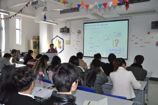 随后,赵玉芬院士在实训楼4405学术会议室,以“Phosphorous Chemistry”为题,给学院师生做了一场生动的学术报告。赵院士在报告中详细介绍了磷化学在生命科学以及在化学合成中的研究进展,并带领师生对于磷化学未来发展进行了展望,同时还介绍了其在磷化学方向的大量研究成果。赵院士用简单的语言将高深的专业知识讲解得通俗易懂。报告会后,赵院士与师生进行了积极的互动交流,并饶有兴致地参观了化学化工学院实验室,就可能开展的合作提出了设想。