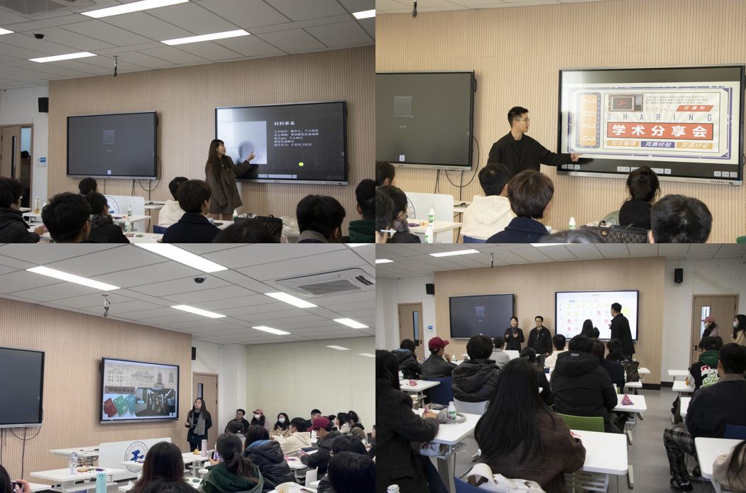 归可郡同学已成功申请英国谢菲尔德大学人文社科学院,她从了解留学、申请定位、材料准备和递交申请等四个方面进行了留学申请专项分享。吴鑫炬同学针对“怎样看懂一篇文章”的问题分享了关于论文框架搭建的四点建议。林煊力同学进行了竞赛经验分享,他从竞赛帮助、素材收集、版面处理、草图绘制、建模软件、竞赛情况等方面提出了自己独到的见解。杜雅丽同学帮助23级新生们更加清晰地了解了加入中国共产党所需具备的条件。孙小莉同学进行了设计竞赛经验分享。