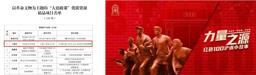 近日,国家文物局、教育部共同发布以革命文物为主题的“大思政课”优质资源项目,公布了10个示范项目、100个精品项目名单。“力量之源 · 红色100”——中共四大纪念馆和上海工程技术大学联合推出的系列红色故事视频入选精品项目(新媒体产品类)。