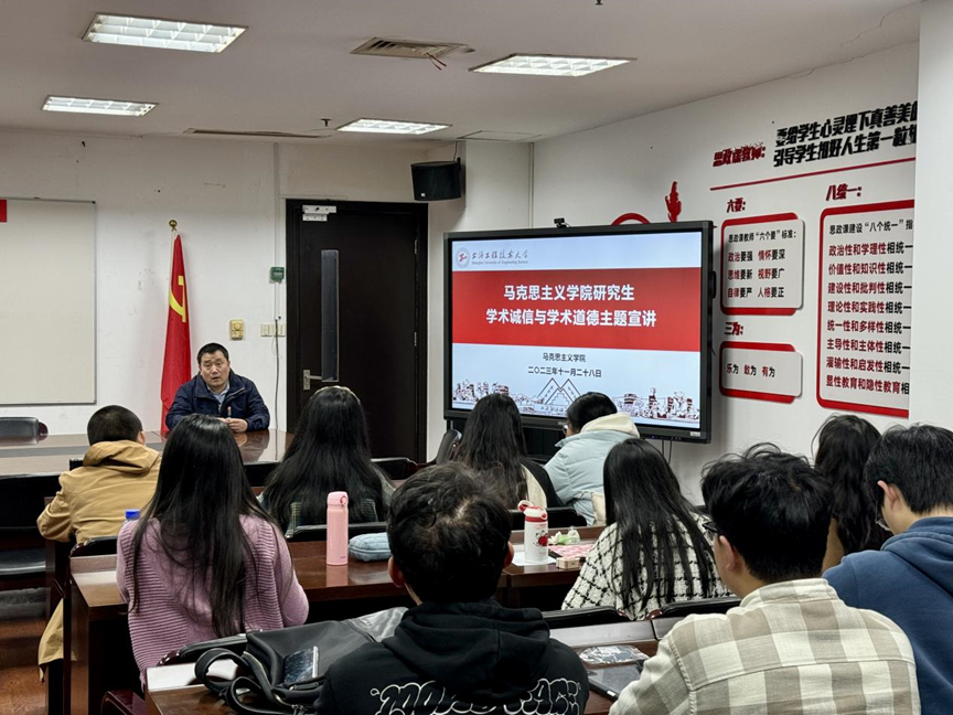 为进一步加强马克思主义理论学科研究生学风建设,聚焦人才培养目标,夯实研究生学科基础,提升研究生专业人才培养质量,11月29日下午,马克思主义学院在行政楼1112会议室举办研究生学风学情座谈会和学术道德专题宣讲会。会议由马克思主义学院副院长于凯教授主持,马克思主义学院研究生参加。