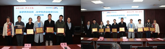 学院党委书记周洁书记为“就业先进”和“就业优秀”专业授牌。2023年,在严峻的就业形势下,学院毕业生就业率达到96.51%,创历史新高。对此,学院向14个专业进行“就业先进”和“就业优秀”授牌仪式,肯定了各专业团队工作的同时,也勉励大家继续扎实推进2024年实现更高质量就业工作。