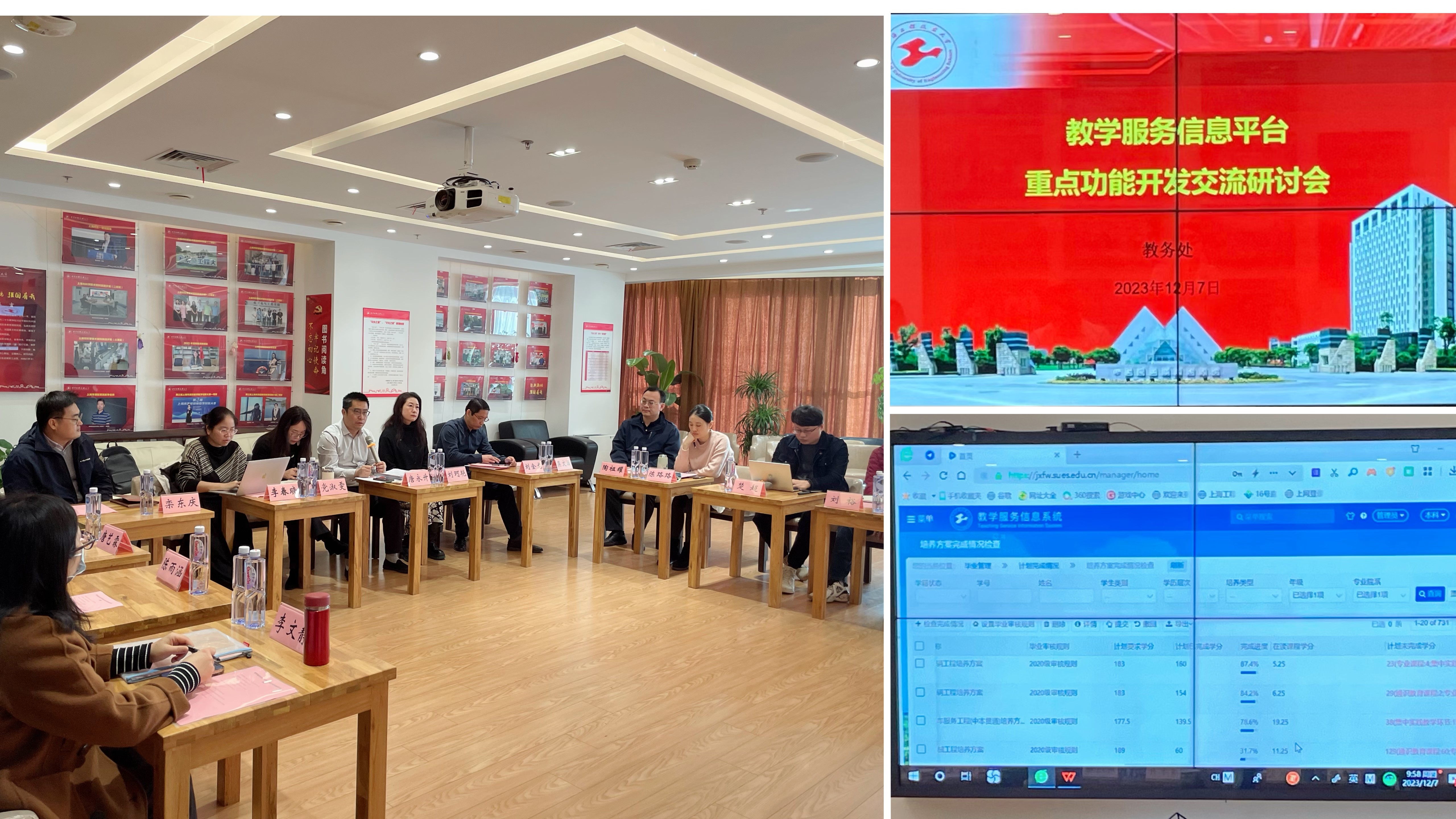 项目开发团队介绍了教学服务信息平台建设的项目完成情况、下一步建设计划尤其是近期重点推进的功能开发情况,并对相关操作进行了演示。