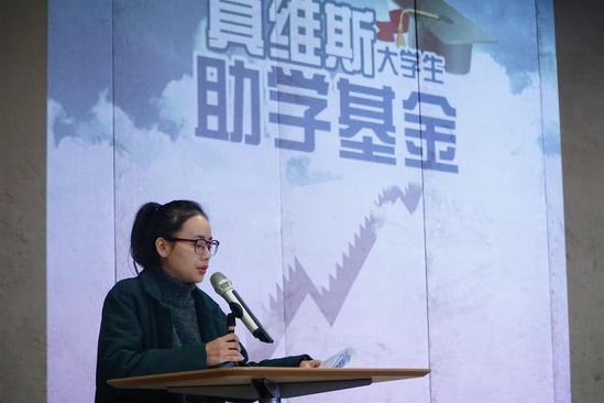 仪式开始,真维斯公司代表李莺女士首先致辞。她强调了教育兴邦的理念,介绍了真维斯公司自2005年起对困难学生的资助,并对所有受助学生表达了美好的祝愿。接着,老师们为受助学生颁发了助学金。东华大学和我校的受助学生代表分别进行了发言,他们用自己的亲身经历描述了真维斯助学基金对他们的帮助,并且向学校、真维斯公司和社会各界的关怀表达了谢意。