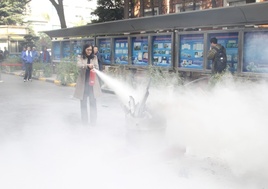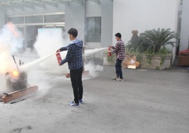 疏散结束后,同学们又举行了灭火演练。在灭火演练场上,只见烟雾缭绕、火光阵阵,同学们兴致勃勃地使用灭火机操练灭火,演练使同学基本熟练掌握灭火机操作和扑灭初期火灾的技巧。通过这次消防预案演练,提高了学生的消防意识,增强了学生疏散逃生能力和扑灭初期火灾的能力。