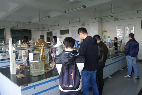 座谈会后,学生志愿者们陪同老校友们参观学院的文化墙和实验室。参观过程中,校友们正好碰到了正在实验室做实验的大二同学们,这让他们怀念起自己当年穿白大褂的时光,纷纷拿出手机合影留念。在学院走廊中的宣传展板上校友们发现了曾经的老同学的照片,这让他们十分开心。