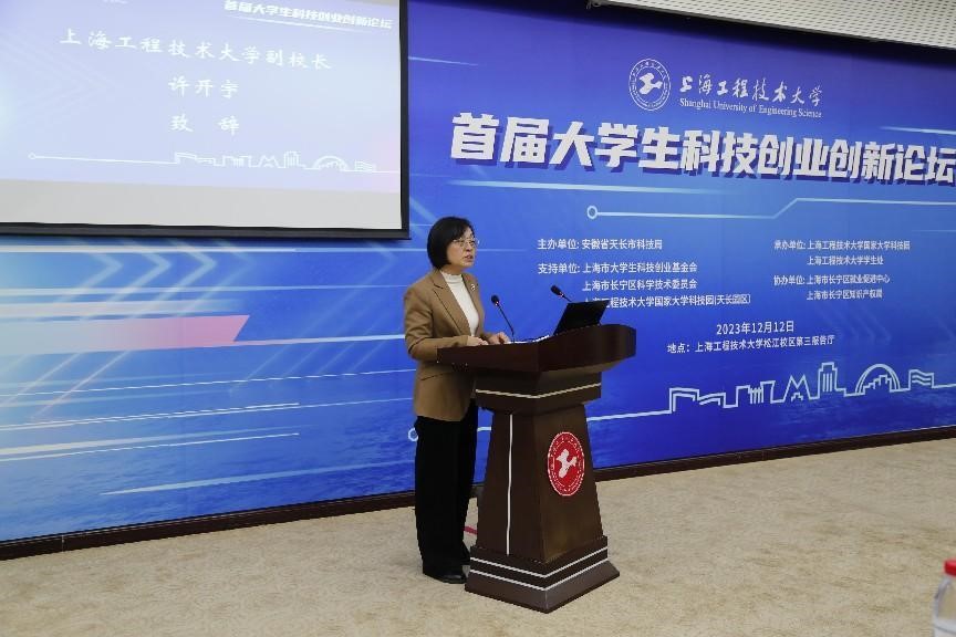 为进一步增强大学生创新创业意识,营造创新创业环境,12月12日下午,首届上海工程技术大学大学生科技创业创新论坛在松江校区图文信息中心第三报告厅举办。副校长许开宇出席论坛并致辞。本次论坛由安徽省天长市科技局主办,上海工程技术大学国家大学科技园、上海工程技术大学学生处承办,上海市长宁区就业促进中心、上海市长宁区知识产权局协办,上海市大学生科技创业基金会、上海市长宁区科学技术委员会、上海工程技术大学国家大学科技园(天长园区)支持,我校各学院师生参加活动。论坛由上海工程技术大学继教产业联合党总支书记、国家大学科技园董事长袁蓉主持。