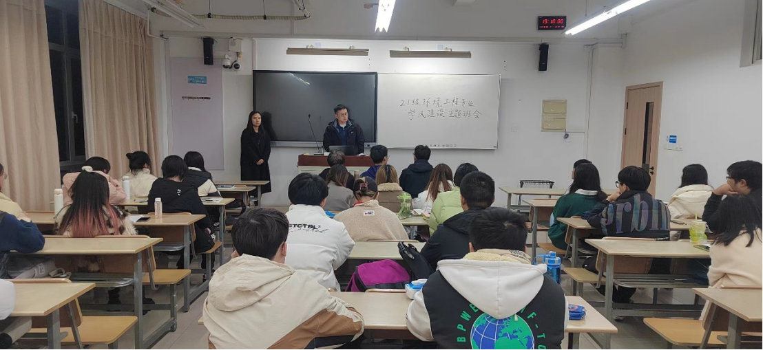 为加强同学们对专业课程学习的认识和理解,环境工程系系主任李旋坤、班主任郝宗娣、辅导员张晓普还召开学风建设主题班会,李旋坤老师再次为同学们详细解读了专业培养计划内容,提醒同学们对照毕业相关要求核对自己当前课程完成情况,为后续修读课程做好计划;郝宗娣老师则为同学们传授了专业课程学习方法和技巧,鼓励同学们发挥主观能动性、克服畏难心理,把自己的学习计划积极付诸于行动。