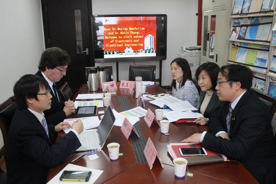 方院长和陆书记向来宾介绍了学院的基本情况和《广播电视工程》专业培养计划,并希望双方以此次交流为契机,深入推进国际化合作。英国爱丁堡龙比亚大学工程建筑环境学院教务主任 Murray MacCallum和国际与学术交流主管张贺忻博士向我们介绍了该校的办学历史、地理环境、专业设置等,双方就学分互认、“3+1”双学士学位项目和“3+2”硕士学位项目方面进行了认真商谈,此外,双方还就博士生联合培养事宜进行了交流,双方在学生联合培养方面达成了共识。此次英国爱丁堡龙比亚大学与我校进一步的交流与合作,拓宽了我校的国际化合作项目,为我校又一次向国际化办学迈出了坚实的一步。