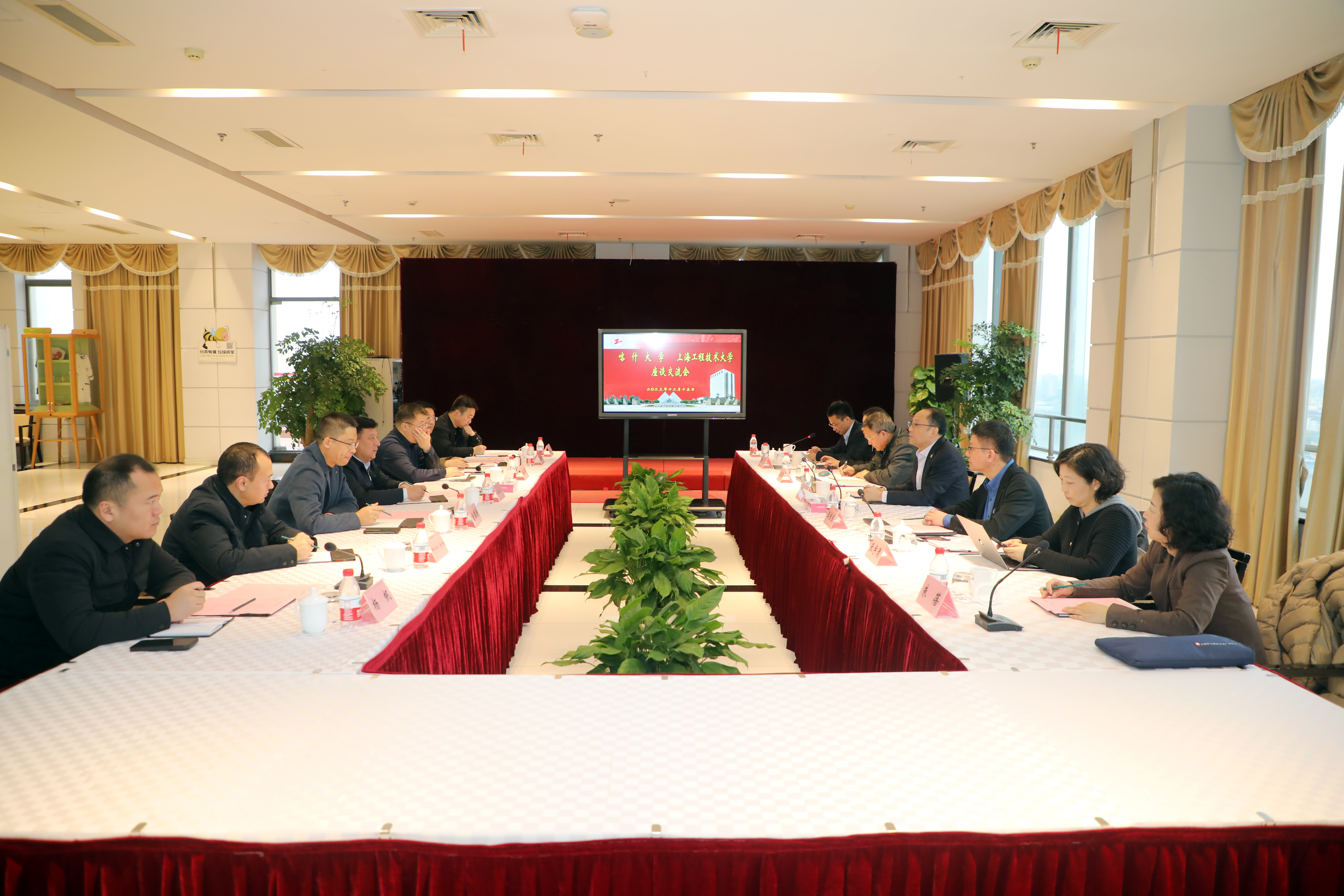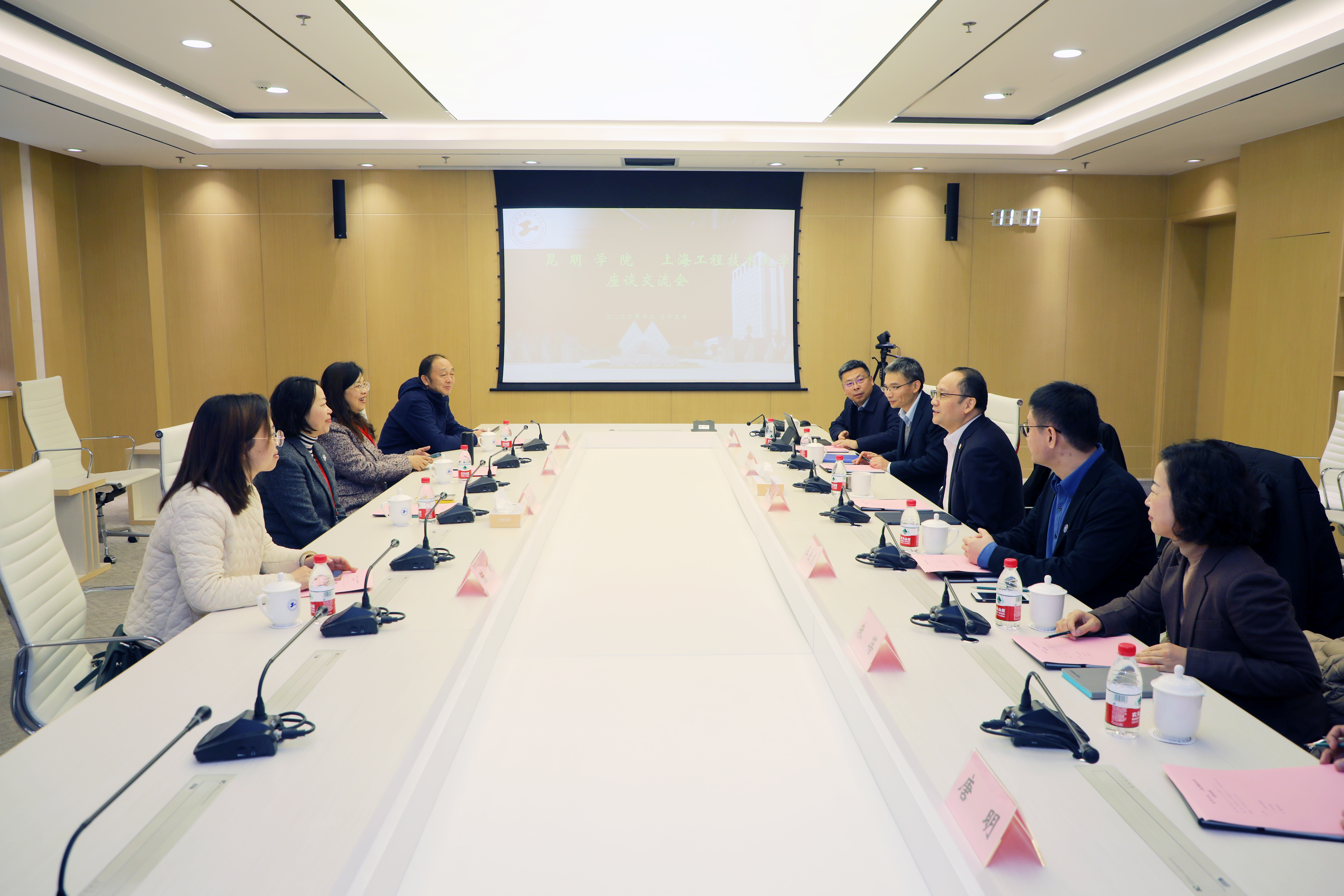 俞涛校长对喀什大学和昆明学院代表团的到访表示欢迎,并介绍了学校的发展战略和办学定位、产学合作教育模式、应用型特色发展及国际化发展等方面的情况和主要成就。他强调,长期以来,学校以建设高水平现代产业学院、中德产学研用创新联合体示范基地等产教融合创新平台为契机,不断创新人才培养模式,深化产教融合发展。近年来,学校坚守服务国家和地方的战略定位,进一步加强对口支援与帮扶工作,以切实行动履行中央赋予上海的重大责任和使命。希望双方以此次交流调研为契机,加强在科教融汇、产教融合、科技成果转化、技术转移等领域的共同探索,推动双方事业的高质量发展。