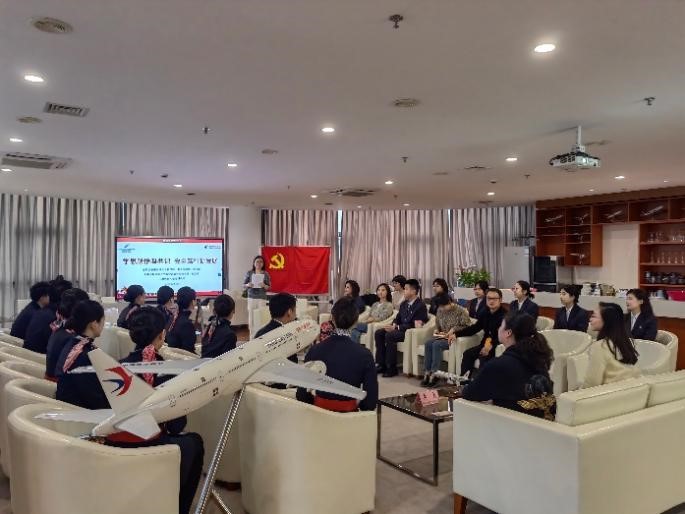 活动伊始,乘务四部第三党支部书记郑士超首先作了支部共建介绍。她详细阐述了乘务四部第三党支部的工作特色、工作理念、目标及近期的工作成果,并向老师和同学们展示了乘务员的未来职业规划,通过蓝图增强学生们对专业的理解和热爱。