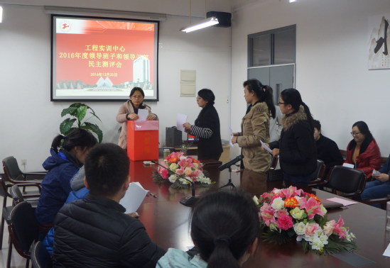 根据校党委相关要求,12月20日,实训中心在实训1号楼1438室召开2016年度领导班子和领导干部民主测评会,会议由实训中心党总支书记胡义刚老师主持。实训中心党政领导班子、校党代表、校教职工代表、室部主任、中心工会主席、党支部书记、全体教研室教师和实训部教师参加了会议。校党委组织部朱良博参加了民主测评会。