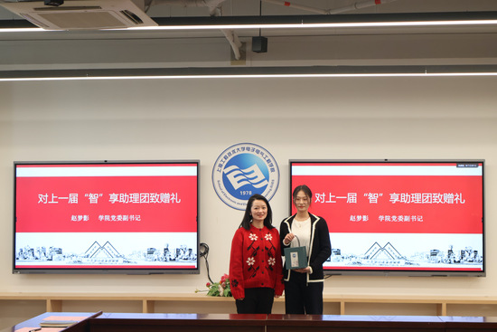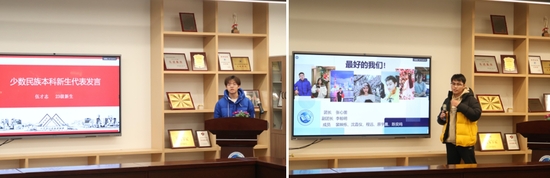 赵梦影介绍了学院少数民族新生基本情况,分享了学院少数民族优秀学生的成长事迹,并对上一届“智”享助理团赠礼。