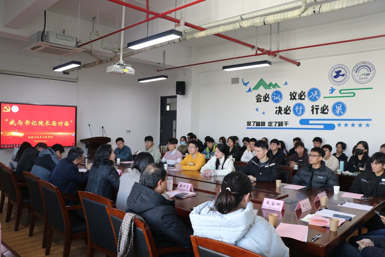 为推动学习贯彻习近平新时代中国特色社会主义思想主题教育成果转化,进一步提高学生教育管理工作水平,12月21日上午,机械与汽车工程学院在现代交通中心8B604举办了“我与书记院长面对面”座谈会。学院党委书记虞蓉,院长方宇,副书记黄中子、副院长张立强,以及各系室主任,教学秘书、研究生秘书、各年级辅导员代表参会,与来自全院各年级、各专业的33名学生代表进行面对面交流。座谈会由学院党委副书记黄中子主持。