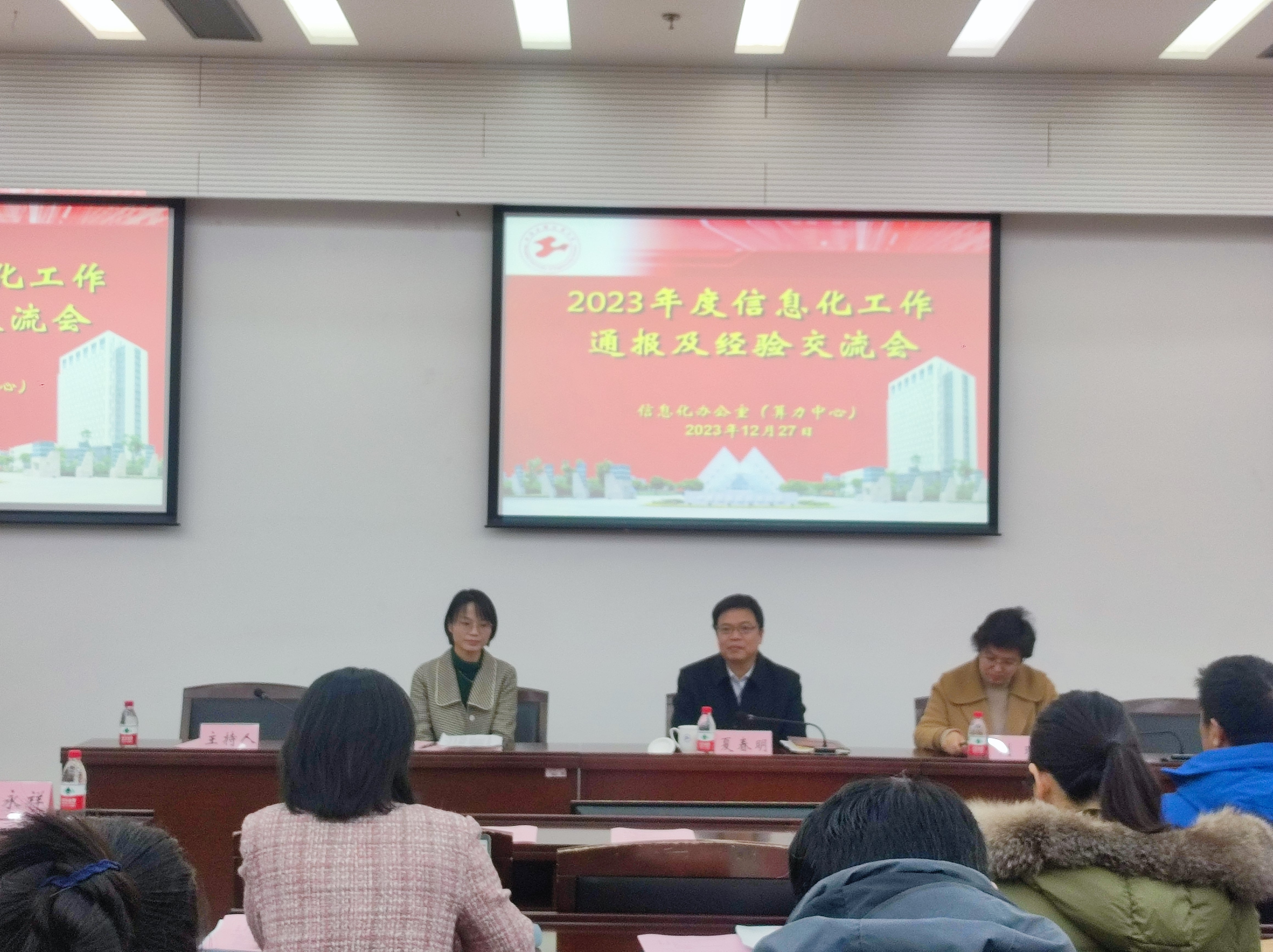 12月27日上午,信息化办公室(算力中心)在图文信息中心第三报告厅召开2023年度信息化工作通报及经验交流会。副校长夏春明出席会议,信息化办公室(算力中心)主任刘瑾,各职能部处、学院分管信息化工作领导和信息管理员,信息化办公室(算力中心)全体人员参加会议。信息化办公室副主任周伟主持。