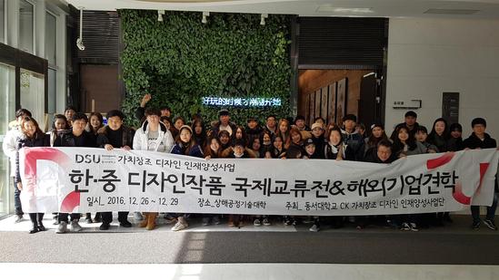 12月26日,中韩多媒体设计学院全体教师携本科生、研究生与韩国东西大学金世和、金亨优教授领衔的东西大学国际交流团共同开展设计作品展览交流活动。展示作品以学院2014级学生作品和韩国东西大学学生代表作品为主。在两校学生相互交流和学习的同时,本次展览也作为2014级学生赴韩国东西大学交流学习成果的汇报展示。在作品展上,中韩方教师均对学生作品给予了较高的评价,鼓励学生们在今后的学习生涯里更加努力,创作出更多优秀的作品。此外,韩国东西大学金世和教授还为全体师生作了名为“2017 Design Trend”的主旨学术报告,金世和教授在对未来设计趋势进行探索的基础上,结合学生的学习方向进行了进一步分析。