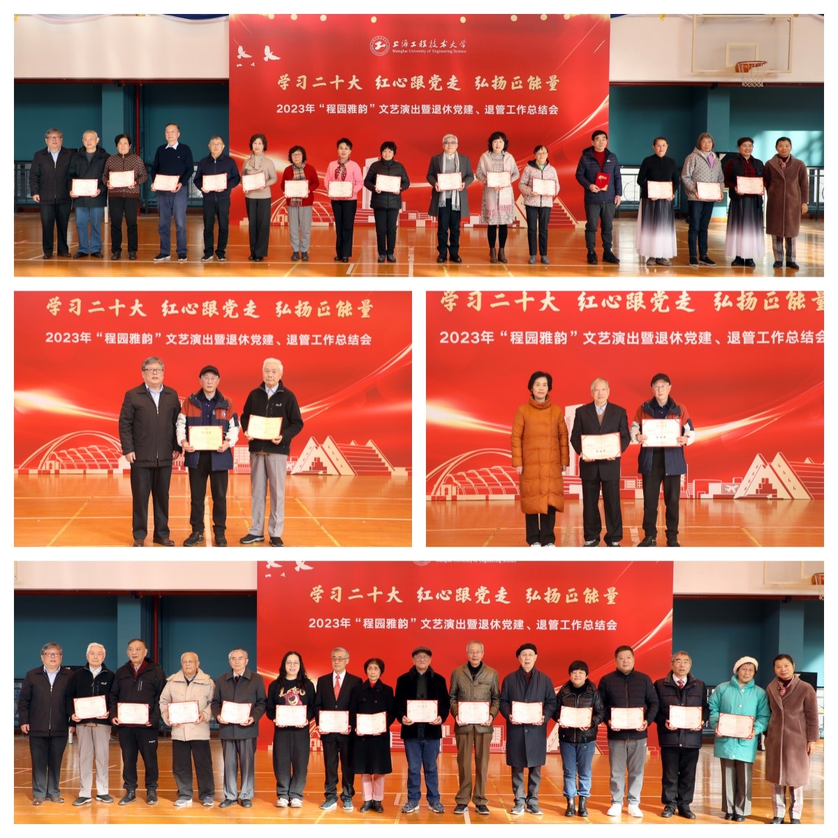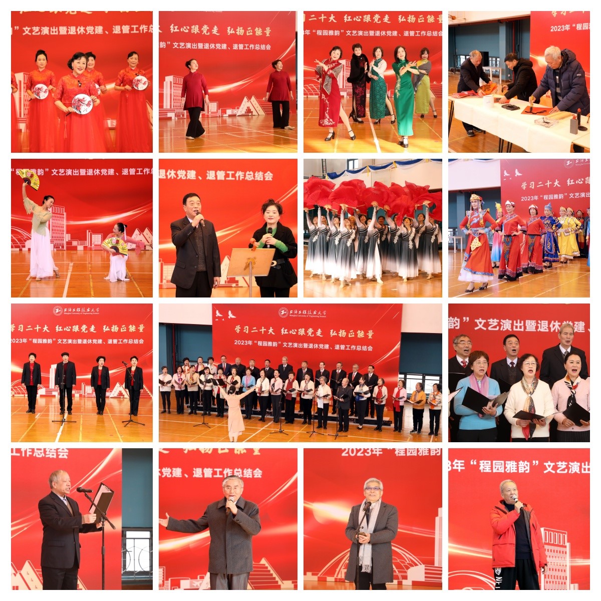 12月27日上午,党委离退休工作部(退休工作处)在长宁校区综合楼篮球馆召开“学习二十大,红心跟党走,弘扬正能量”2023年程园雅韵文艺演出暨退休党建、退管工作总结会。校党委副书记史健勇,退休局级老领导曹伟武书记,校老教授协会会长、关工委副主任夏斯云,校关工委副主任、老教授协会副会长陈力华,离退休工作部部长孙文钧,党委组织部老干部办副主任赵雷,离退休工作部副部长张漪,退休教工党委委员,校关工委委员,离退休教工党支部书记和支委委员,退休教工块组长,社团负责人及老同志代表参加了会议。党委离退休工作部组织员吴薇薇主持会议。