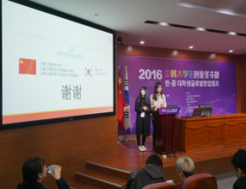 中韩两国创业团队在冬令营活动中,分别介绍了各自的创业项目,展现了中韩两国青年创业者的聪明才智与独特创业视角。随后,中韩两国创业团队进行自由搭配,分组进行详细的市场调查,撰写市场调查报告,并由各小组代表发布市场调查报告。经过专家组对各组调查报告的综合评分,《小学生编程辅导Wearable技术》被评为一等奖,《纹身师相关网络经营》被评为二等奖,《献血1对1网络服务》评为三等奖,专家们对获奖项目团队进行了颁奖。