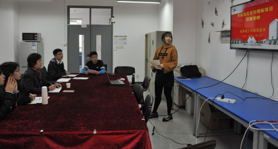 1月3日下午,化学化工学院在实训楼4404开展第二期预备党员党性锻炼项目结题答辩。第一批共有五名预备党员参与了答辩,学院总支书记刘宇虹、组织员包一鸣、制药工程学生党支部书记殷昊、高分子材料与工程学生党支部书记曾玲玲担任答辩评审。五名预备党员从项目方案、项目执行、项目效果、团队合作等方面汇报了一年来自己主持的党性锻炼项目的开展情况。评审老师结合项目材料对项目答辩情况作了点评。