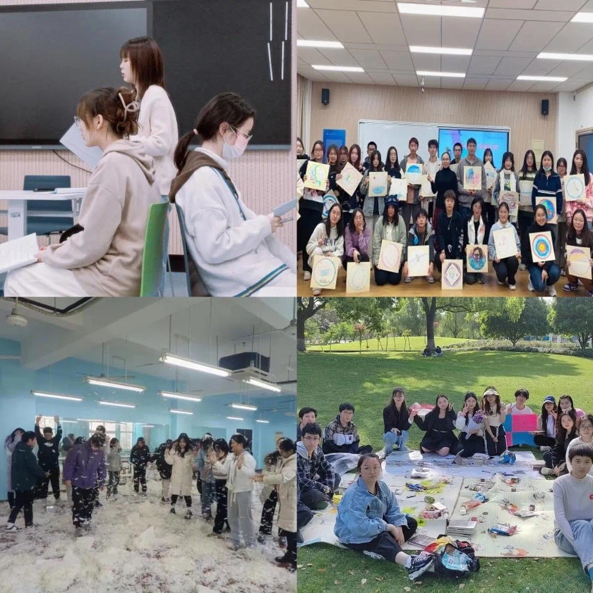 艺术润心。学院坚持“以美育人 赋能成长”,重视美育在大学生心理健康教育中的重要作用,强化艺术实践育人功能的同时引导学生学习心理调适技能,塑造健全独立人格:通过“艺术表达”“以画绘心”“悦纳自我”等活动,邀请专业培训师带领同学们探索音乐与绘画的世界,了解用艺术的方式表达自身的思想与情感,缓解情绪压力,陶冶艺术情操;开展“草坪读书会”,在“朗读”“倾听”与“交流”中,在向上向善的艺术作品引导下,深切感受文学的魅力所在,同时关注自我心灵成长。