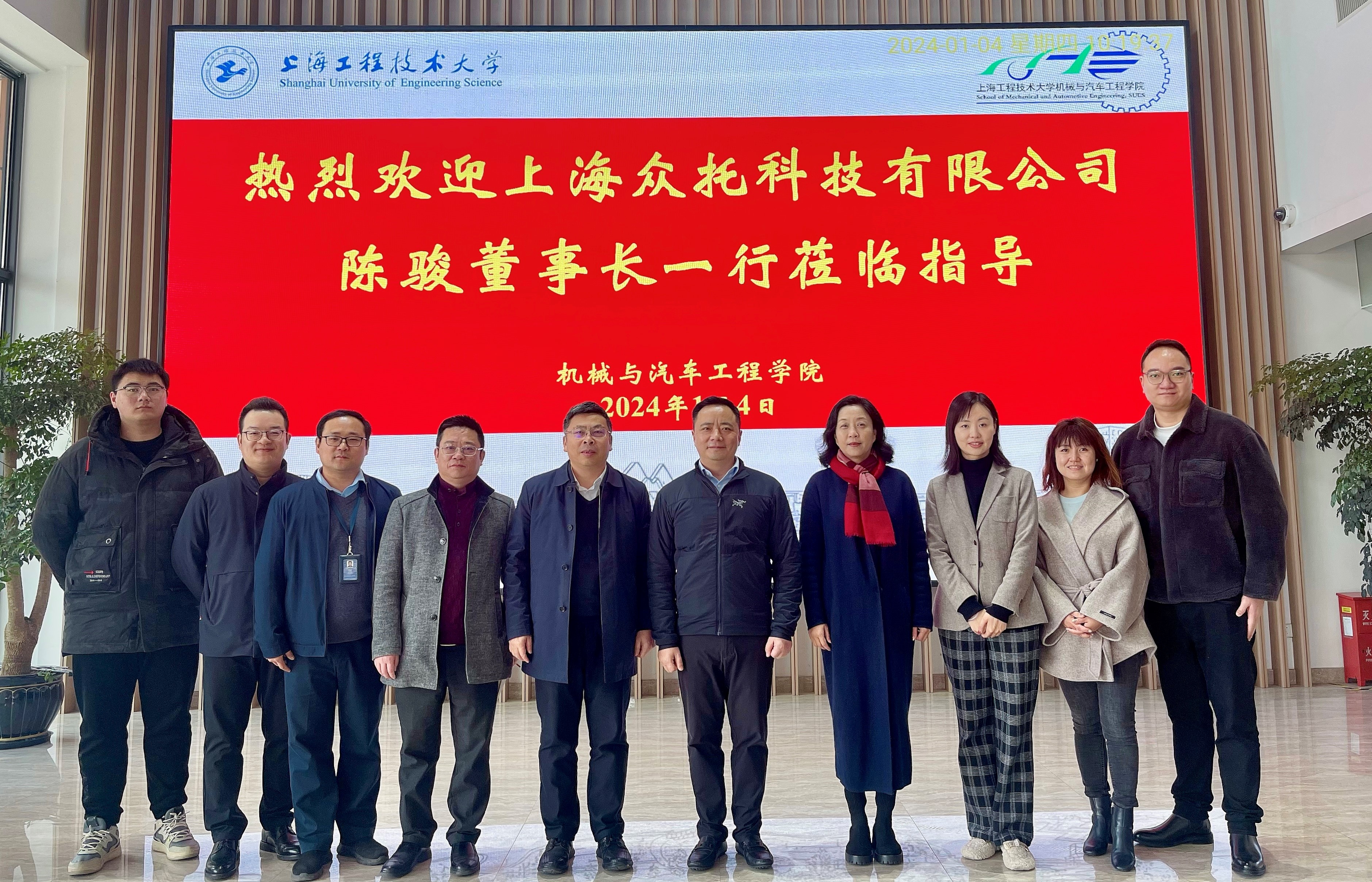为推动校企合作与产教融合,应机械与汽车工程学院邀请,1月4日上午,上海众托科技有限公司董事长陈骏一行来校交流。校党委副书记、副校长朱晓青亲切会见了陈骏一行,并介绍了我校的发展概况,校企共话合作发展愿景。