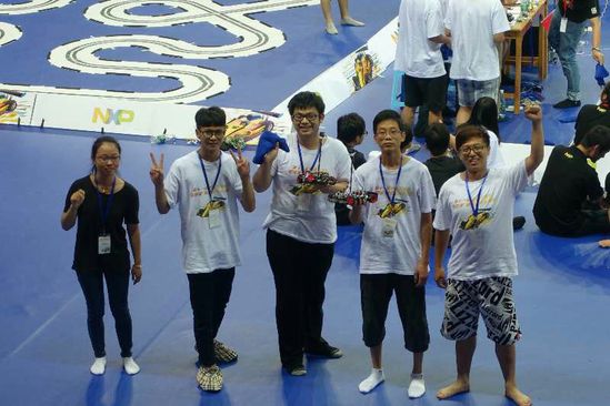 “双车追逐难度大,故障率高。但同学们都想挑战第一,所以前两次均使用高速挡。”回忆起比赛的惊心动魄,陈扬有些感慨,“比赛前我们的策略是两次失败后换成中档速度。沉着的队长紧张的气氛中稍微调整传感器参数,仍采用最高档进行最后一跑。做老师的只能在看台上默默祈祷,好在最后还是成功了!”