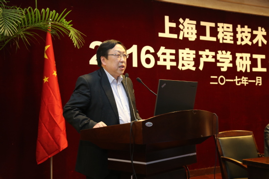 校党委副书记夏斯云宣读了上海工程技术大学2016年度产学研工作优秀企业(单位)、优秀组织者名单,副校长姚秀平对2016年产学研工作进行了详细总结。