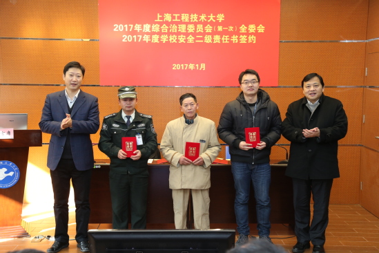 会议还举行了2017年度综合治理责任书签约仪式,表彰了校园年度拾金不昧先进个人、首届大学生安全知识竞赛优秀组织奖等先进个人和集体。