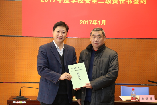 综治委副主任、副校长史健勇在主持会议时指出,2017年学校教育事业的各项工作要稳中求进,安全、稳定是首要的基本任务。他希望各部门通力合作、齐心协力,各司其职,确保校园安全有序。他要求,各部门要在寒假前认真组织开展一次彻底的安全检查和安全教育,确保寒假期间校园平安。