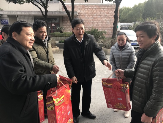 校领导先后来到监控中心、大门岗亭、学生寝室楼、维修值班室、大食堂,向春节期间仍坚守工作岗位的后勤、保卫处等部门的工作人员一一握手问好,感谢他们为全校师生员工能够度过一个快乐祥和的春节付出的辛勤劳动,表达学校党政的亲切关怀,向他们送上学校精心准备的慰问品,并致以新春佳节问候和美好祝福。