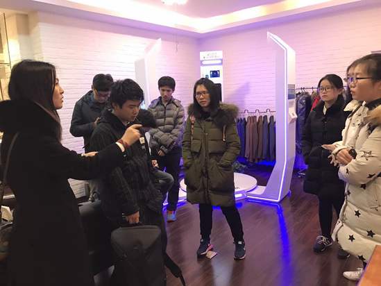 在参观完上海纺织博物馆后,服装学院与高中生们一行又来到了旗袍领头企业上海瀚艺服饰有限公司及上海纺织服装智能定制旗舰店。瀚艺企业是我国民族企业,至今有百年历史,其生产的旗袍2010年被美国时任总统奥巴马誉为中国的美丽,同时也是我校产学合作单位。学生们第一次学习到一件旗袍服饰是如何一步一步从,量体,选面料,到成衣的制作流程,许多同学纷纷拿起了手机拍照记录,拿出了笔和纸详细记录了厂家的介绍说辞。在智能定制旗舰店内,一台由上海纺织集团与工程大联合研发的高精尖的智能测体仪将大家的视线从传统的旗袍制衣带到了未来制衣。同学们依次站上测体台,3秒不到测题数据瞬即呈现在了他们面前,都感到叹为观止。在调研结束后,我院教师们和学生们就论文的研究方法和写作方法进行了讲解。