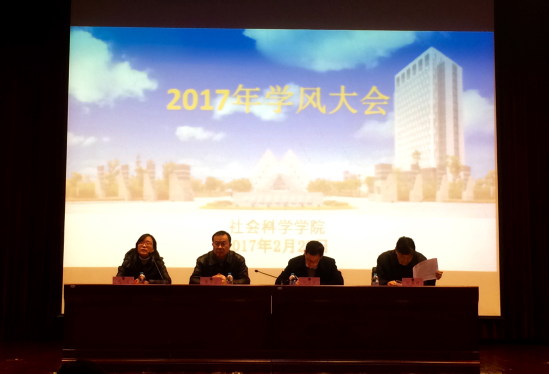 开学伊始,营造良好的学习风气是学院的首要任务。同学是否能够快速进入学习状态,源于有一个互励互助的学习氛围。2月22日晚,社会科学学院在校志宏堂举行了“2017年学风动员大会”。社会科学学院院长刘志欣,党总支书记曹开云,学院学术委员会主任张健明,学院党总支副书记程玉莲及全体辅导员和同学出席了大会。