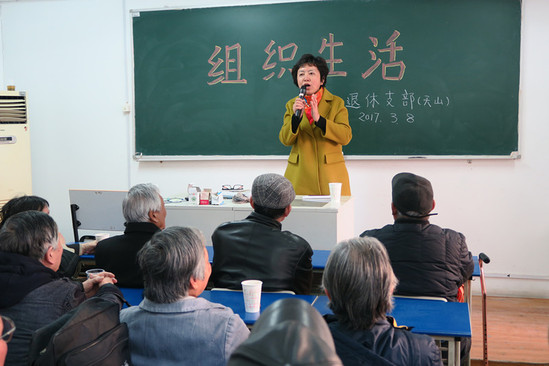 3月8日,高职学院、高级技校党委书记沈海庆,副书记田盈耕和党办同志一行来到天山路校区,参加了天山校区退休党支部组织生活,与80多名退休老党员欢聚一堂。