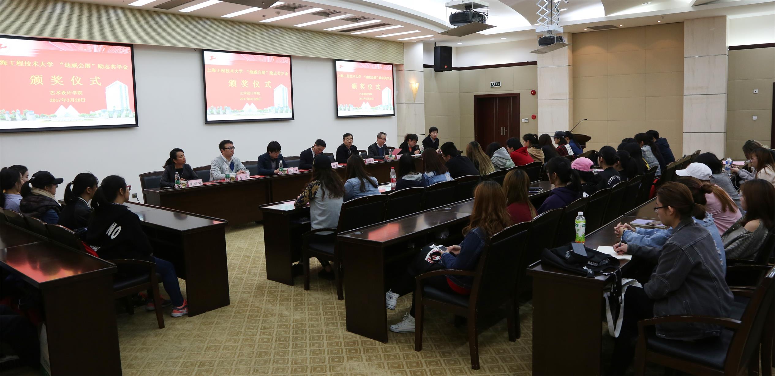 3月28日中午,上海工程技术大学“迪威会展”励志奖学金颁奖仪式在图文信息中心第三报告厅举行。上海迪威展览有限公司总经理黄力强、副总经理潘妙方;艺术设计学院党总支书记许传宏、院长高瞩、学生处副处长缪琳出席颁奖仪式。会议由艺术学院党总支副书记吕宁主持。