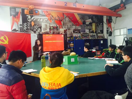 此次组织生活会分为两个篇章。第一篇章:“汽车人”在回望。通过了解中国共产党的历史,中国汽车行业的发展历程,王咏臻同学回顾车迷俱乐部的前身及车队的历史党支部历史,支部党员发表心得感言,加强对党支部的认同感。韩惠羽同学分享了车队在节能车上所做的努力。第二篇章 “汽车人”在行动,党支部成员结合自身经历、现场模拟赛车比赛前的场景,大四党员冯雷阳、雷霆、傅满华分享车迷俱乐部党支部中的体验和感触,理论与实践的相结合的切身实践。他们说到作为一名学生党员深感荣幸,他们会不断加强党性修养,用自己的行动去感染身边的每一个人。让支部成员明白支部目前现有的特色项目,为“汽车中国”所做的努力。以党建促学建,提高大学生的政治素养和思想觉悟,从而带动学风建设,完善党支部组织建设。