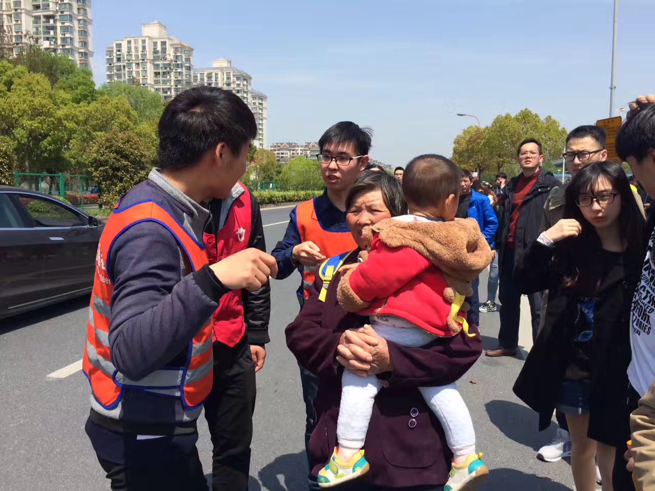 随后抵达的李哲辉同学,在疏散乘客的时候,遇到一位赶往医院做血透的老人。他深知老人的病情不能拖延,当即向老师报告,并亲自陪同老人的家属送老人赶往医院,途中他主动负责搬轮椅、推送老人的工作,一直将老人护送至中春路站。老人在无障碍电梯前握着李哲辉的手说:“今天真是太感谢了,你真是个好小伙!”