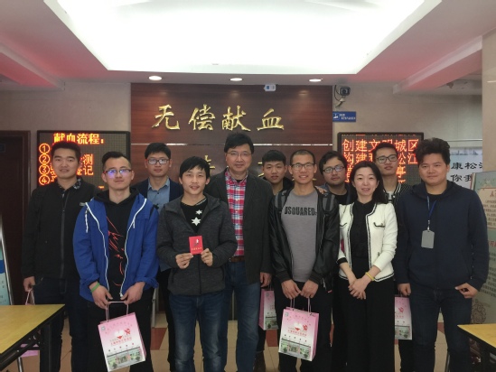 4月14日上午,材料工程学院学生在松江血站参加无偿献血公益活动。学院党委书记于治水、副书记梅元媛早早就前往血站探望、慰问学生们,向他们表达了亲切的问候。