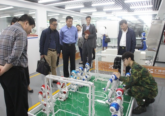 胡宁院长首先对上海市教委长期以来对学校的建设和发展给予的大力支持和帮助表示由衷地感谢,并介绍了学院、校事业发展的最新情况,重点介绍了中本贯通、中高职贯通、上海市一流专业、校企合作、国际交流合作、上海市产教研协同基地及“上海市机器人技术开放实训中心”建设等方面的情况。市教委职教处赵宁处长一行听取汇报后,在学院领导的陪同下实地考察了“上海市机器人技术开放实训中心”、“上海市机电一体化开放实训中心”、“上海市数控技术应用开放实训中心”、“图文信息中心”和“体育馆”的建设和使用情况。