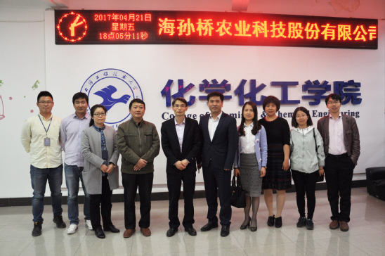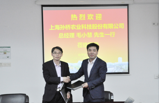 4月21日下午,上海孙桥农业科技股份有限公司董事长兼总经理毛小慧一行到访化学化工学院,并在实训楼4403会议室签订产学研战略合作协议,化学化工学院饶品华院长、王锦成副院长及部分教师代表参加签约。