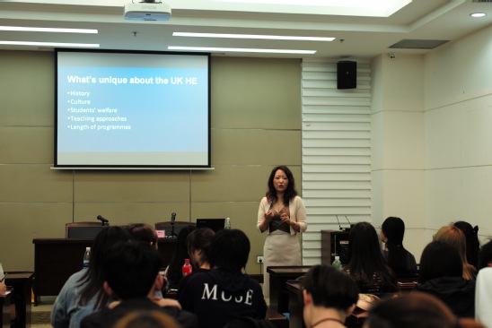 交流会上,Dr.Julia Wang给同学们介绍了英国利物浦约翰摩尔大学的院系设置、学科建设及发展、以及英国利物浦约翰摩尔大学独特的文化。她结合自身的经历向同学们分享了她在英国利物浦学习和生活的心得体会和收获。Dr.Julia Wang表示通过海外学习交流,学生们不仅可以开拓国际视野,学习不同的课程知识,接触高端的专业展览,体验多样的异国文化,更可以学习英国的高等教育理念。