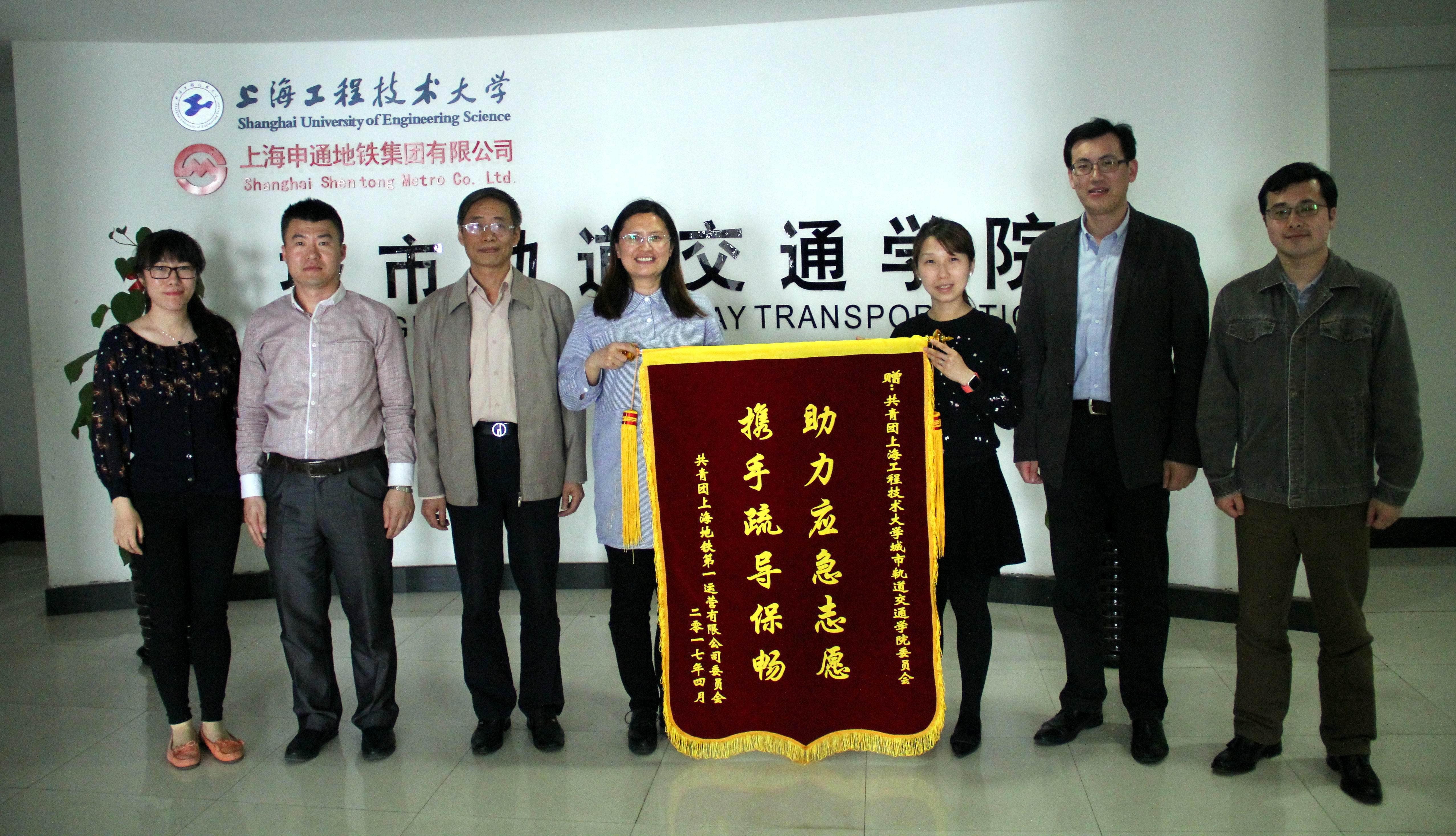 4月24日,上海申通地铁集团有限公司团委书记卢思杰、团委副书记金沨崧、上海地铁第一运营有限公司团委副书记庄园一行专程来访城市轨道交通学院,送上“助力应急志愿,携手疏导保畅”的锦旗,对学院15名志愿者在轨交九号线4·14应急志愿服务中的出色表现表达感谢。学院党总支书记刘牧众、党总支副书记万慧琳对他们进行了热情接待。