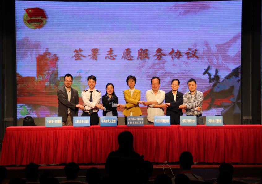 高职学院院长胡宁教授为“小螺钉”志愿服务队授旗,宣告“小螺钉”志愿服务队正式成立。学院党委书记沈海庆与各志愿服务基地嘉宾签署了《志愿服务共建协议》。志愿者基地代表上海铁路局上海站团委陈浩书记讲话时,对长期以来与学院的长期共建表示感谢,对高度评价了青年志愿者服务所取得的成绩。