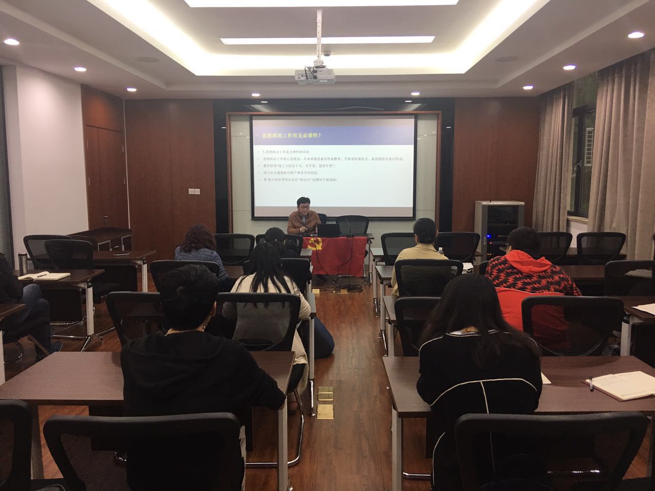 5月4日,正逢“五四”青年节之际,校党委讲师团老师、社科学院马克老师在长宁校区教学楼106,给中法学院党员师生,进行了以“习近平总书记全国高校思想政治工作会议讲话学习体会——把思想政治工作贯穿教育教学全过程”为主题的讲座。中法学院院长周晓鸣老师,服装学院党委副书记、中法学院学生工作负责人张漪老师以及中法学院党员师生参加了本次讲座。