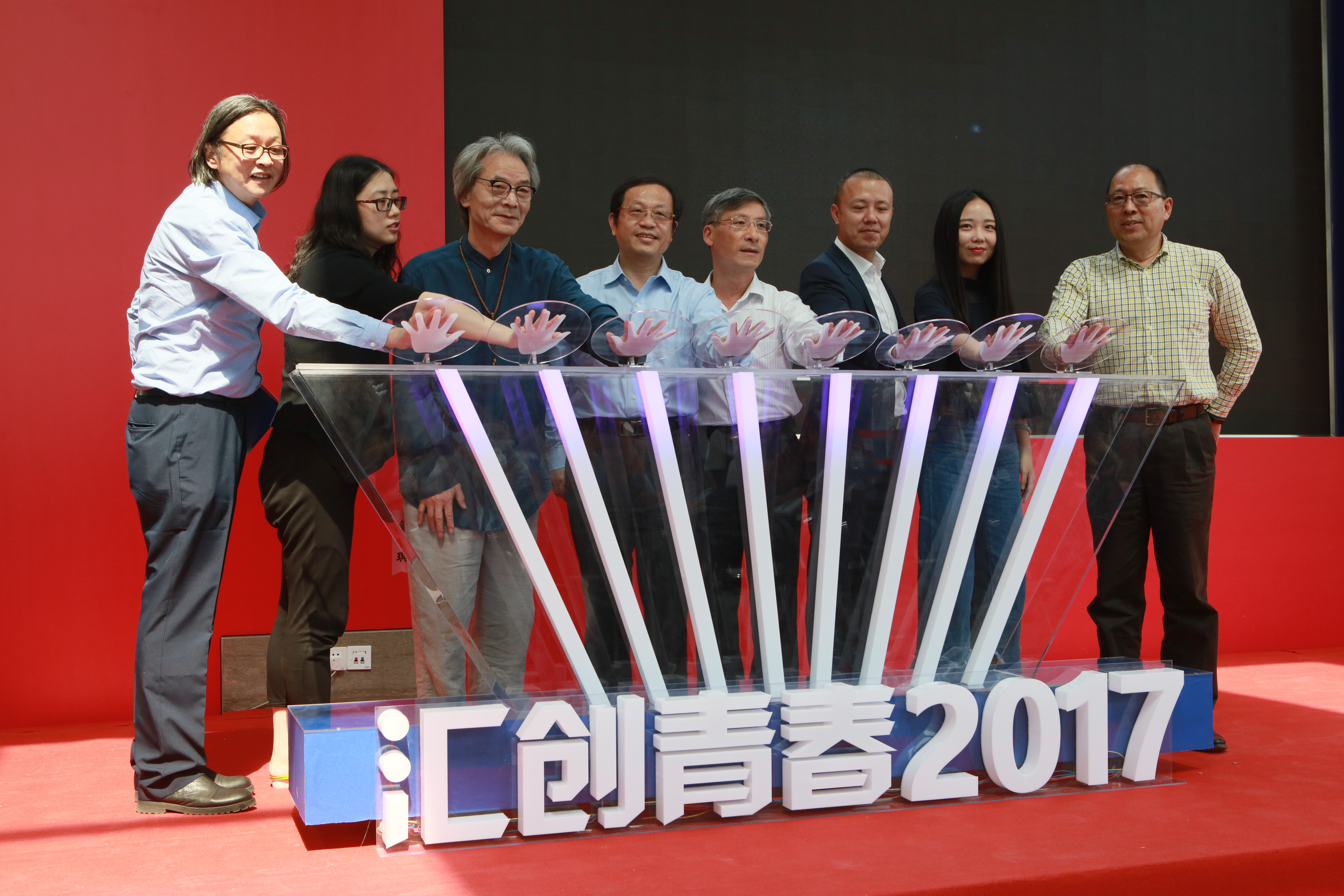 接下来现场嘉宾与获奖学生代表一同上台,启动了本届汇创青春上海大学生文化创意作品展示季(数字媒体艺术、动画类)活动。到场嘉宾与参赛者共同参观了本次展示。趣味交互的唐仕女俑video mapping光影秀,身临其境的萨尔瓦多•达利意象虚拟现实世界,结合体感交互与全息投影的“八音叠奏”,爵士乐引发的意识流影像,暗黑主义的定格动画等优秀作品为参观者带来了视觉冲击,为大家呈现了一场视听盛宴。