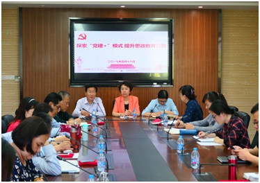 会上,管理系党支部书记刘春娣以支部“党建+”模式为基础,结合“课程思政”主题党日,做了经验介绍。她从概念理解,目标维度的确定,内容上思政元素的融入,课程评价上育人元素的定位等几方面进行了具体介绍,强调“党建+”模式与思政工作的有机结合的重要性