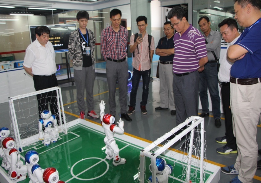 会后,在副院、校长万军等陪同下,来访人员一行参观了高职学院、高级技校“上海市机器人技术开放实训中心”、“上海市机电一体化技术开放实训中心”、“上海市数控技术应用开放实训中心”、 “上海市模具设计与制造实训基地”。学院、校先进的设备设施、一体化的教学方法和规范管理及美丽校园给代表团留下了深刻的印象。