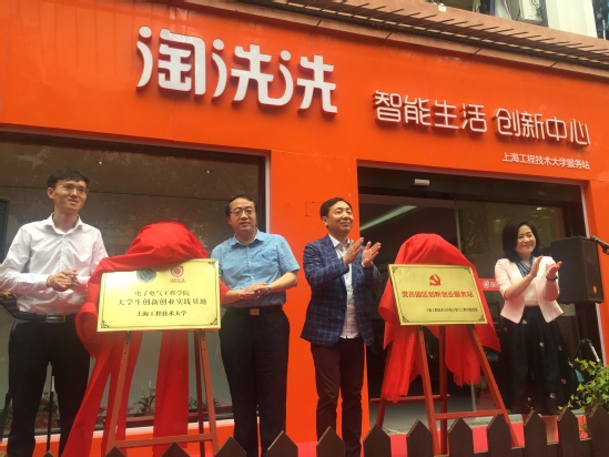 5月23日上午,学校学生宿舍园区(三期)热闹非凡,电子电气工程学院与淘洗洗智能科技(上海)有限公司合作共建的“党员园区创新创业服务站”正式揭牌成立。